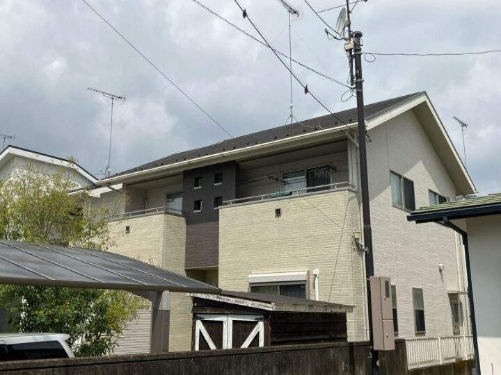 屋根塗装:ジャパンカーボライン スーパームキコートルーフ カラー:9111 カーボングレー 外壁塗装:ジャパンカーボライン スーパームキコート カラー:9010 クールホワイト/8079 チャコール/8111 オータム |