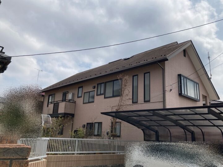 屋根材:INAGAKI ICひらぶきヒランビー220 カラー:セピア 外壁塗装:ジャパンカーボライン スーパームキコート カラー:8203 ローズベージュ |