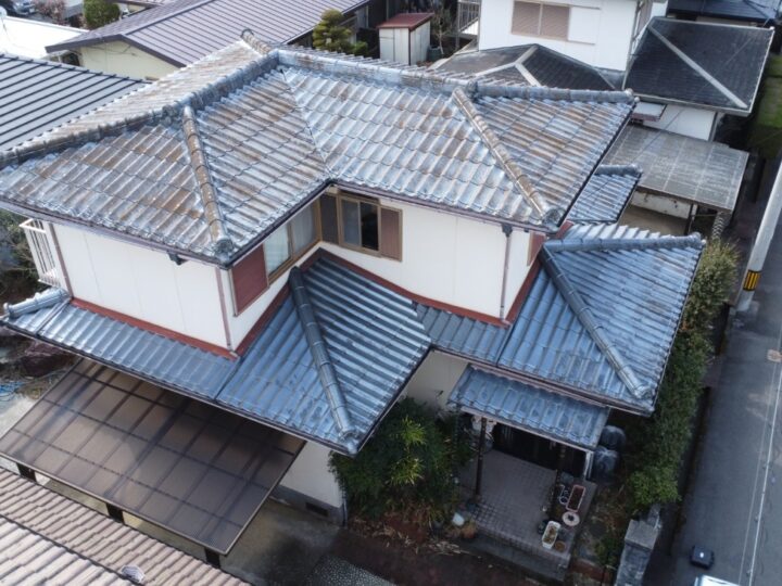 経年劣化により、コケの発生や塗膜の劣化により瓦の素地が暴露している箇所も見られました。