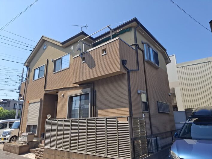 外壁:パワーボードに水性プレミアムシリコン塗装 屋根:塗装できずガルバリウム鋼板カバー工法 |