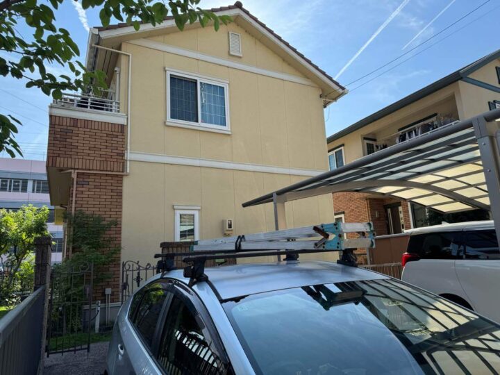 外壁、軒天 使用塗料 アステックペイント・超低汚染リファインMF-IR 使用色 8096 : ライトクリーム 破風、鼻隠し、雨樋、窓モール、土台水切り 使用塗料 アステックペイント・1液マックスシールドネオF-JY 使用色 8073 : トスカニー |