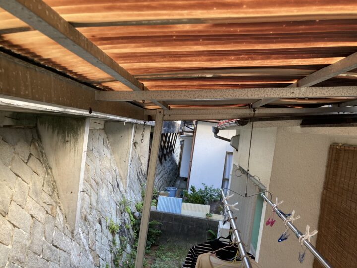 広島市安佐南区高取 K様邸 波板交換、ベランダ撤去工事