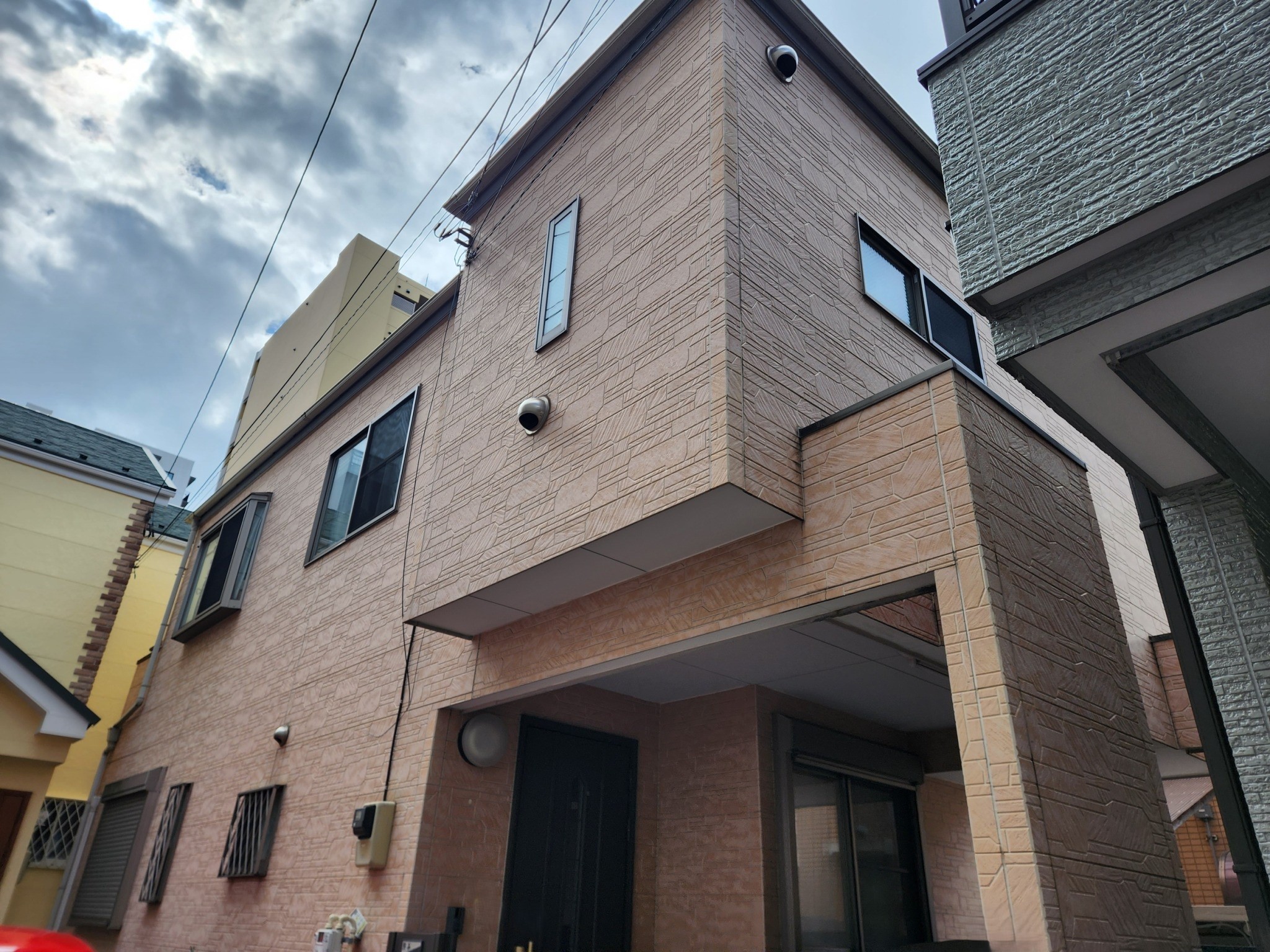 今回、外壁塗装・屋根工事(カバー工法)で深井塗装さんにお願いしました。同時期に建てた近隣の家の外壁塗装・屋根工事が完了し、我が家がラストになりました。築20年で始めての大規模改修とあって、3社に見積もりをお願いしました。その中で一番提案書(現地調査報告、工事プラン、見積り等)の内容が細かくて良かったのでお願いしました。外壁は遮熱フッ素塗料、屋根はスーパーガルテクトで屋根をカバーしてもらいました。大きな遮熱効果、断熱効果を発揮するとのことなので今年の夏は期待して良さそうです。塗装色はこちらの希望色で試し塗りをして頂き実際の色を見る事ができ、思っていたより濃い目の色だったので少し明るめの色にしました。2色を使ったダブルトーン塗りで仕上げはほぼイメージ通りだったので大変満足しています。工期は3週間の予定でしたが途中天候不良等で1~2日遅れで基礎部分を最後に無事完成しました。足立区の助成金申請も適切に対応して頂きありがとうございます。最後に小笠原店長および担当して頂いた職人さんの方々に感謝してます。有難うございました。
