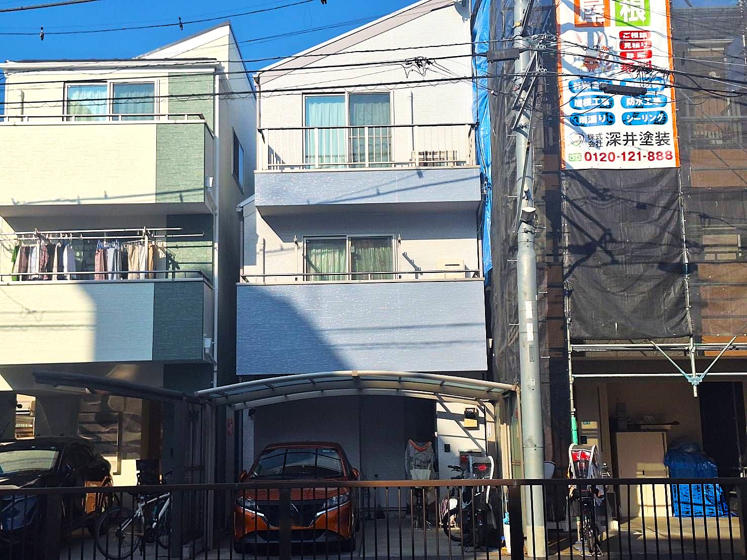 若いのに挨拶もしっかりできるしっかりした職人さんで、色が車などにつかないようにカバーして対応してくれました。