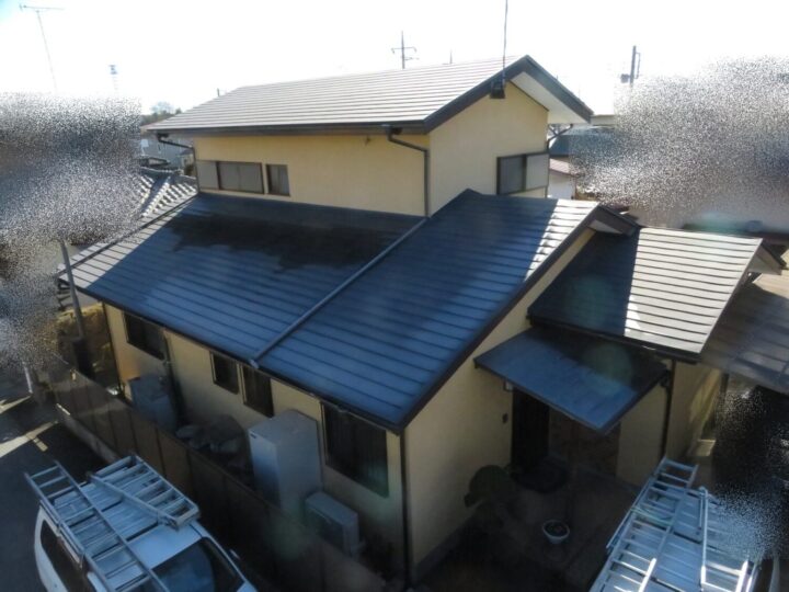 屋根塗装:ジャパンカーボライン スーパームキコートルーフ カラー:9114 キャビアブラウン 外壁塗装:プレマテックス フレックスカラー カラー:PX-736 波板交換/破風板金/雨樋工事 |