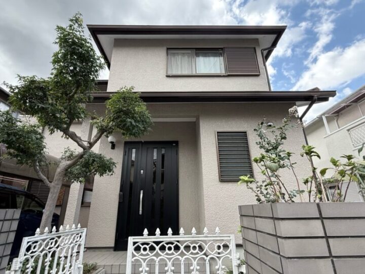 外壁:スーパーラジカルシリコンGH3分艶 8095:ミッドビスケット 屋根:スーパーシャネツサーモSi 9118:バーガンディー |